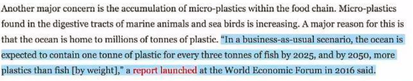 據(jù)《衛(wèi)報(bào)》報(bào)道,全球消費(fèi)者每秒就可售出約20000個(gè)塑料瓶,并且這個(gè)數(shù)字預(yù)計(jì)在三年內(nèi)還將增長20%。聯(lián)合國秘書長古特雷斯警告稱,按照商業(yè)慣例,到2025年,預(yù)計(jì)世界海洋每三噸魚中就會(huì)包含一噸塑料,到2050年,海洋中塑料垃圾的總重量可能會(huì)超過魚類重量。美國科學(xué)雜志《科學(xué)進(jìn)展》估計(jì),截至2017年7月,人類已生產(chǎn)了至少83億噸塑料,而全球得到回收的塑料只有9%左右,另有12%的垃圾經(jīng)過了焚燒處理,其余的79%則被堆放在垃圾填埋場或暴露在自然環(huán)境中,當(dāng)然這就包括了海洋和其他水道。